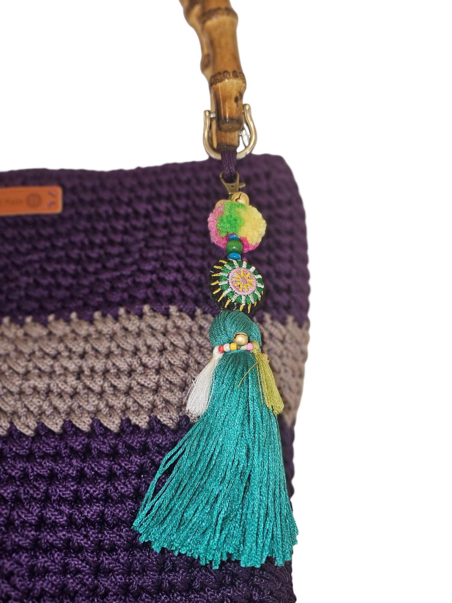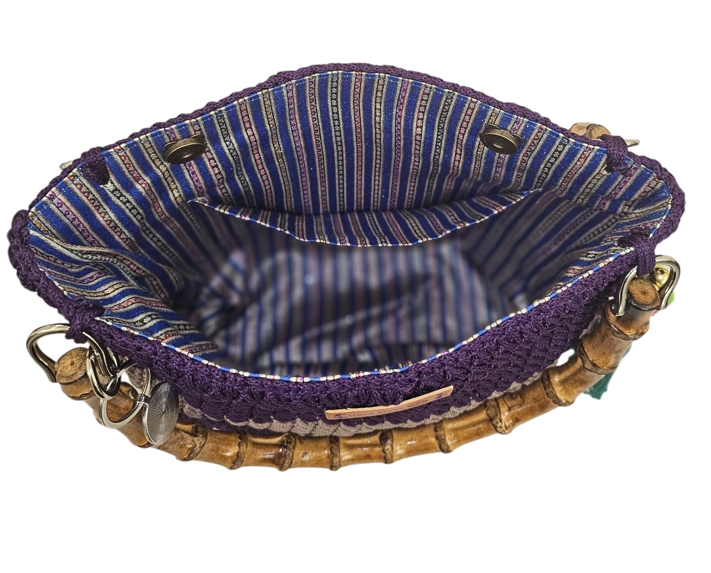 This fairly large tote bag is perfectly woven to carry all your everyday essentials. Has luxurious wooden bamboo handles and is lined with a Lebanese artisanal lining material. Its colourful and bold for summer.